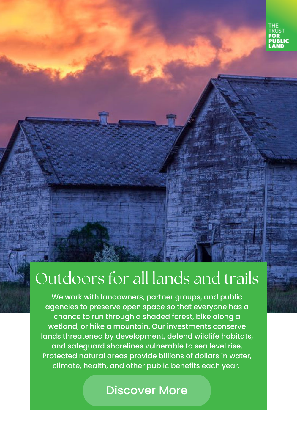 TPL creates parks and protects public land so that everyone will have access to the benefits and joys of the outdoors.